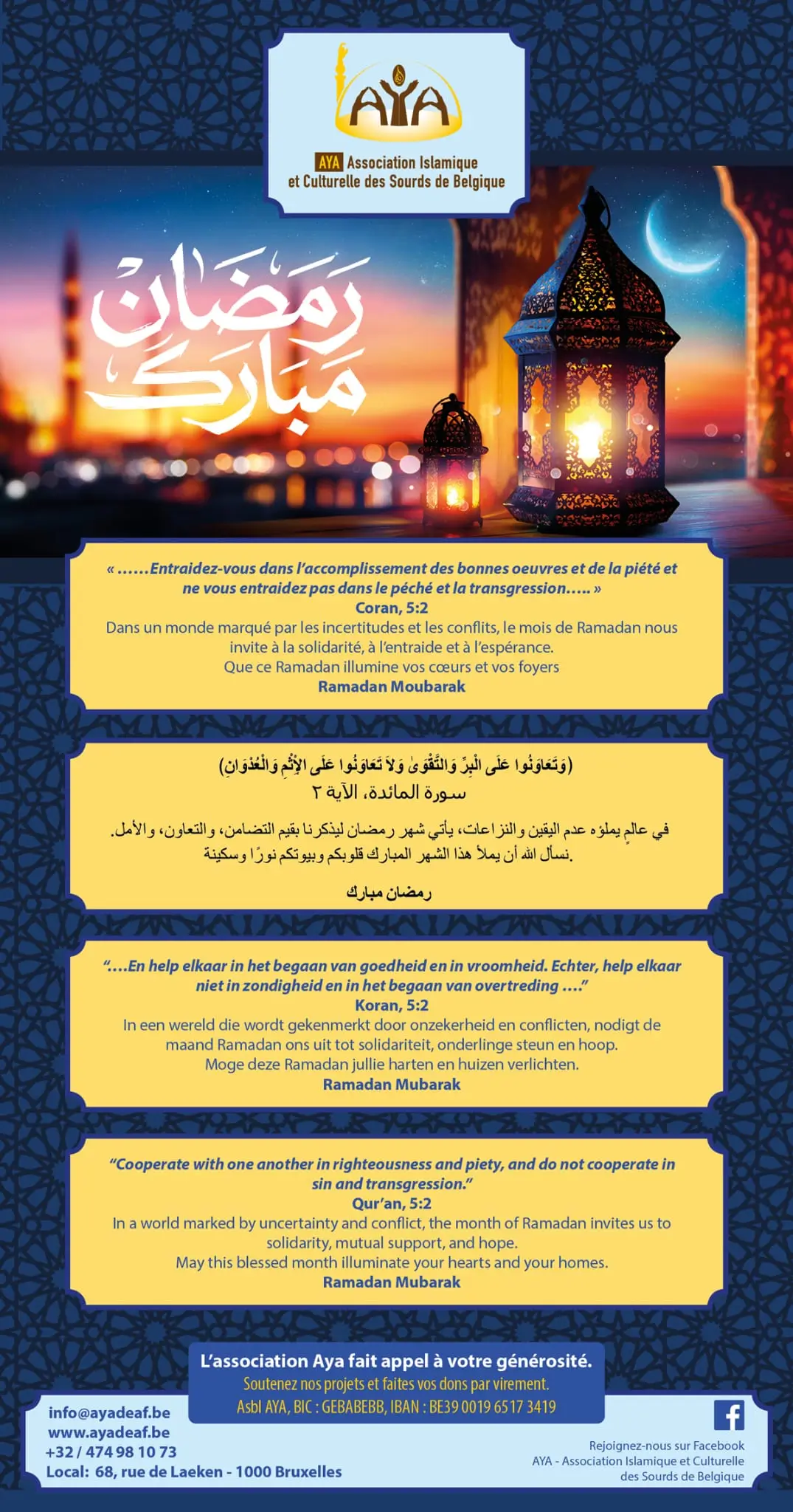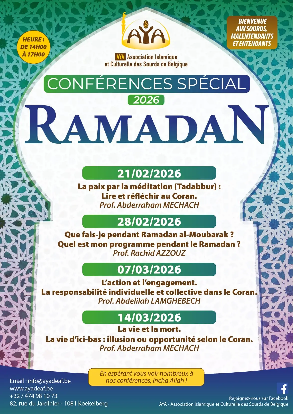 Comme chaque année, nous organisons une série de conférences durant le mois béni du ramadan. Ouvert à tous. Bienvenu !