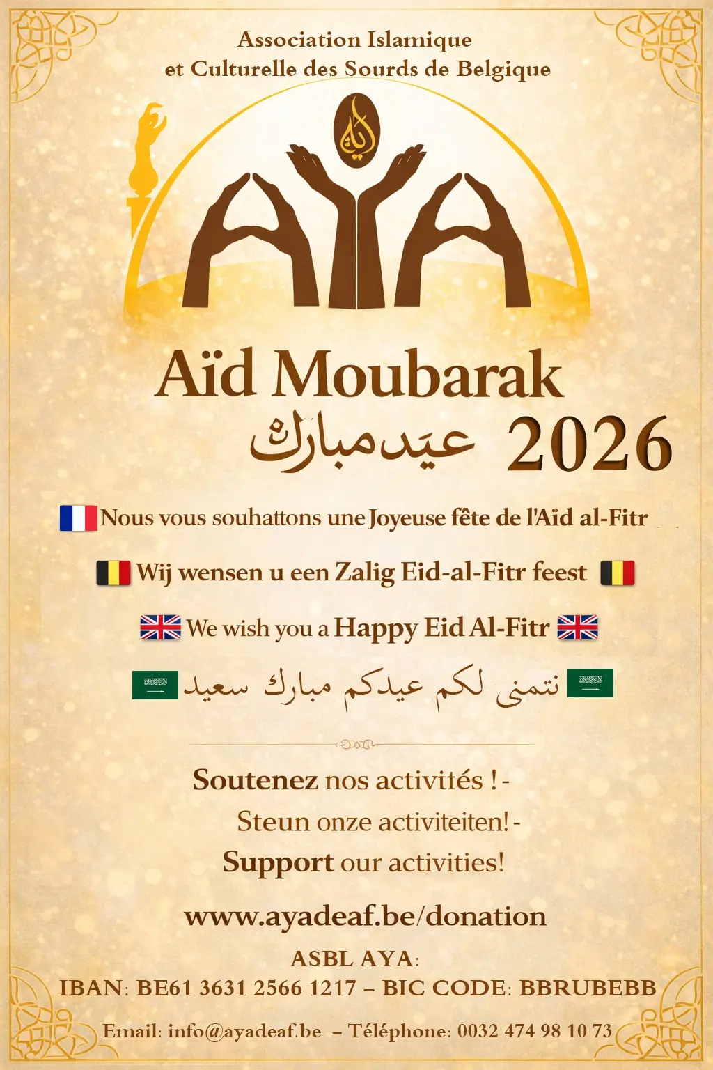 AYA est une asbl qui organise de nombreuses activités pour les sourds et malentendants. Cependant, nous avons besoin de votre aide pour développer nos activités et les faire perdurer dans le temps.